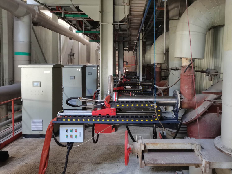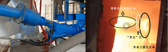 水泥厂回转窑煤粉等离子体复合燃烧器安装现场与炉内燃烧实况